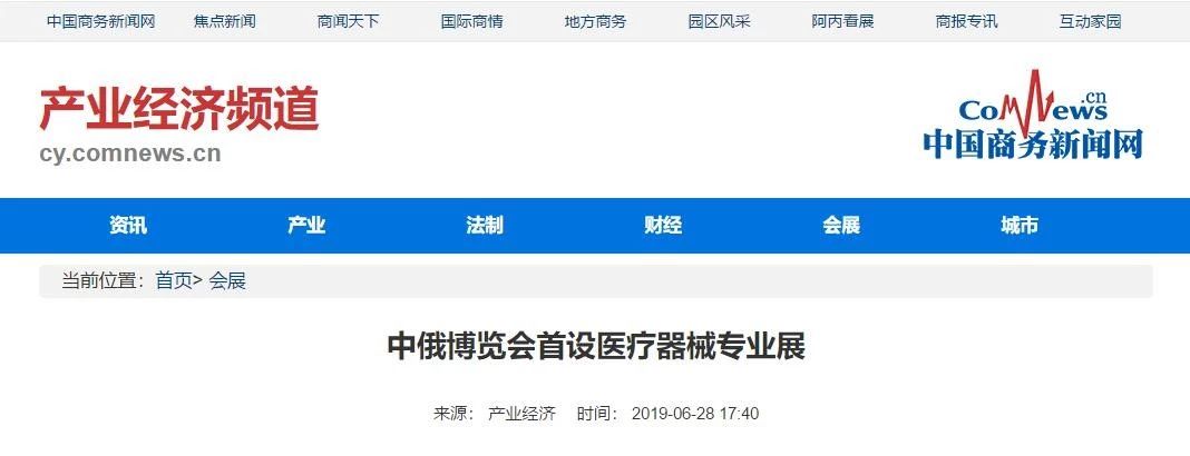 | 中國(guó)商務(wù)新聞網(wǎng)報(bào)道中俄博覽會(huì)首設(shè)醫(yī)療器械專業(yè)展 | |