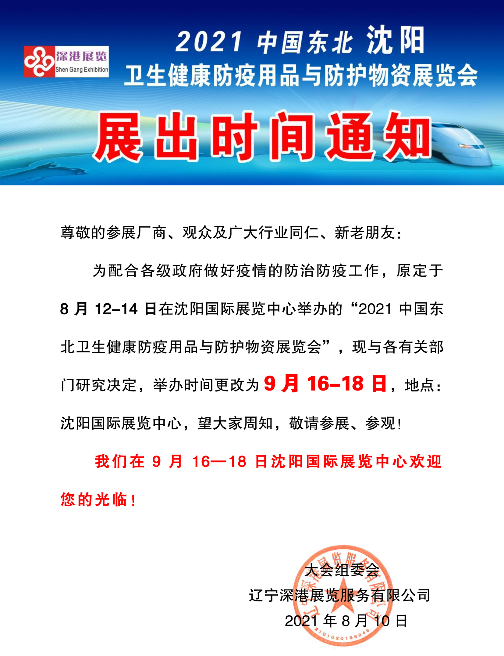| 2021沈陽防疫物資展更改為9月16-18日在沈陽國際展覽中心舉辦?。?! | |